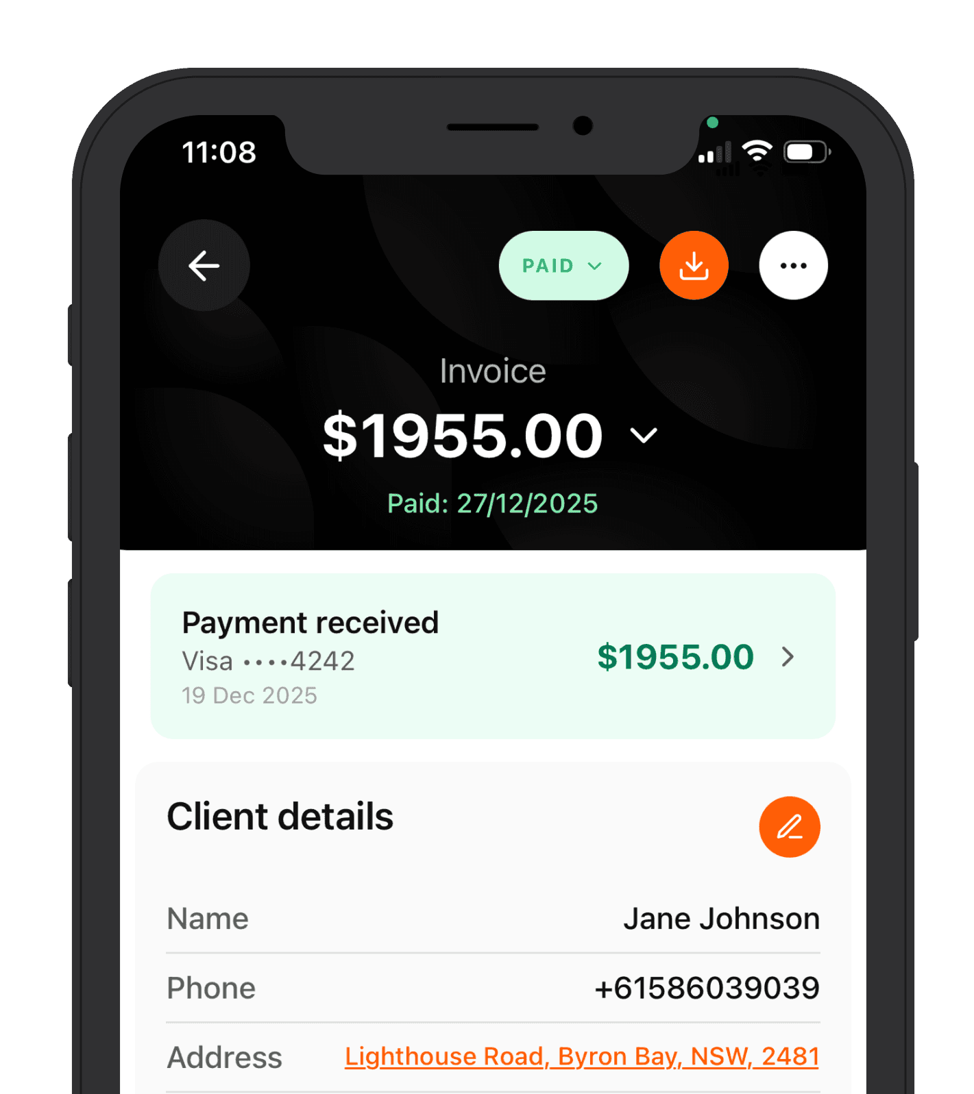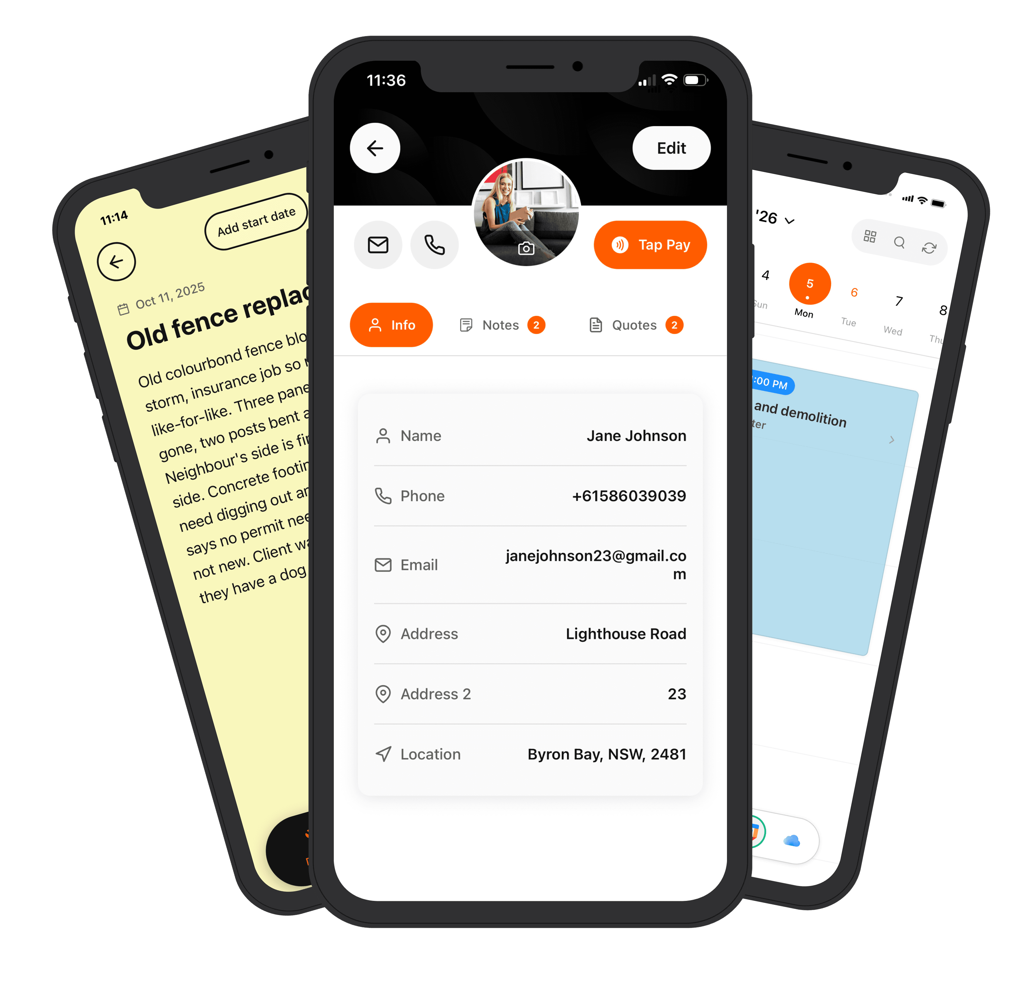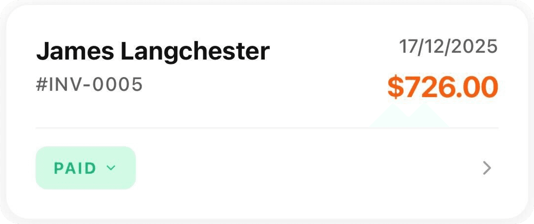 Notes become quotes. Quotes become invoices. Invoices get paid on the spot with Tap to Pay.