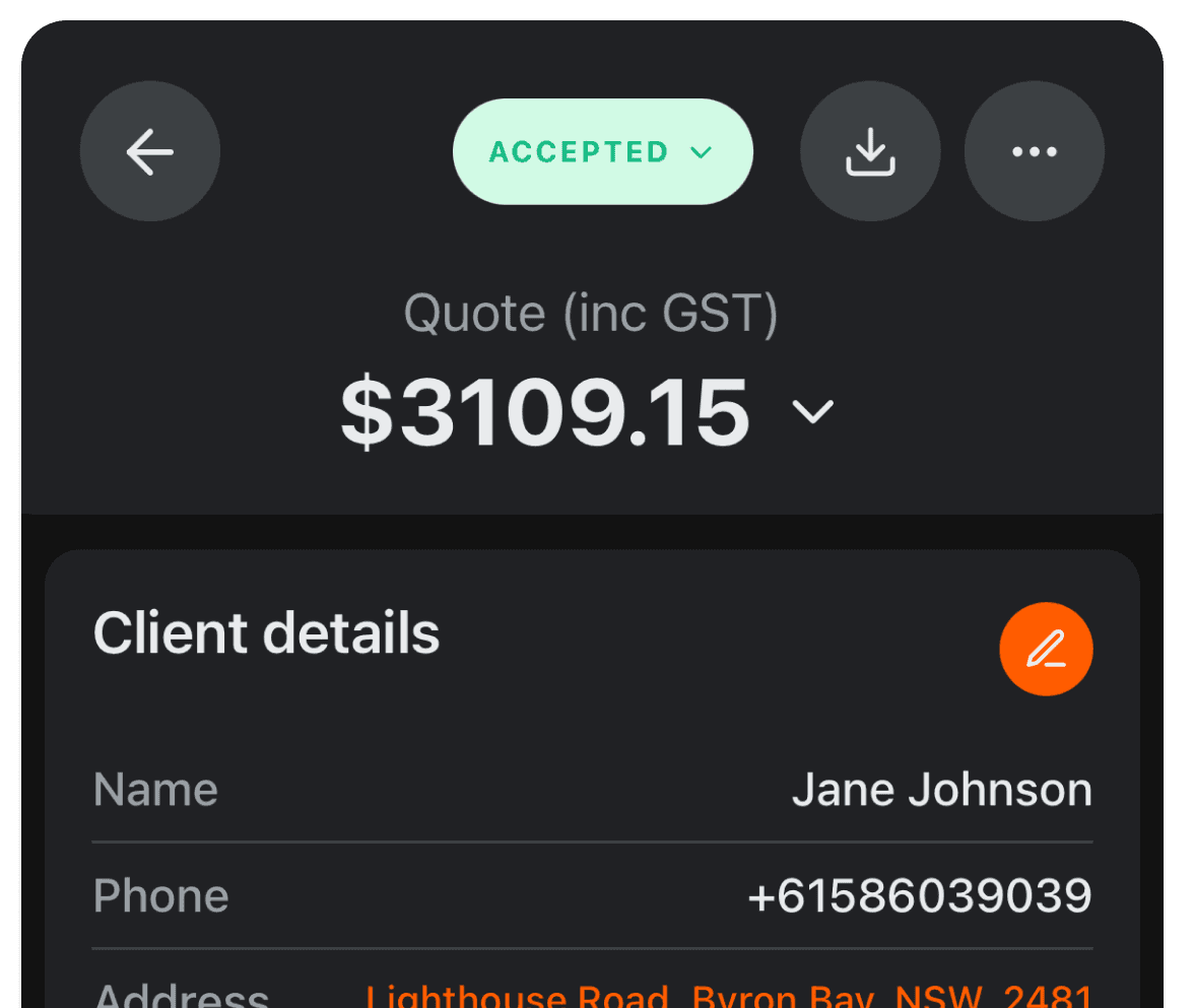 Turn your notes into professional quotes and invoices with one tap. Automatic numbering, GST included, and ready-to-send PDFs mean you look professional and get paid faster.