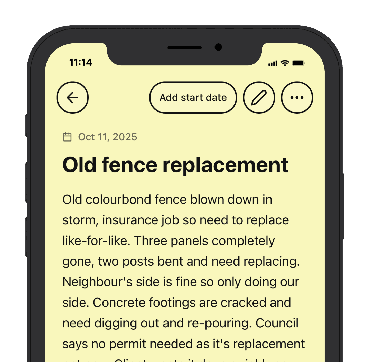 Enrich your notes with job site photos for future reference, add measurements you took on-site, and create a detailed list of materials for the job.