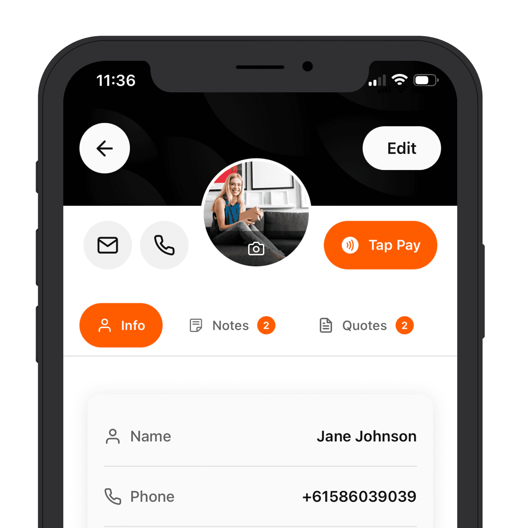 Your own CRM on the go, with client management.