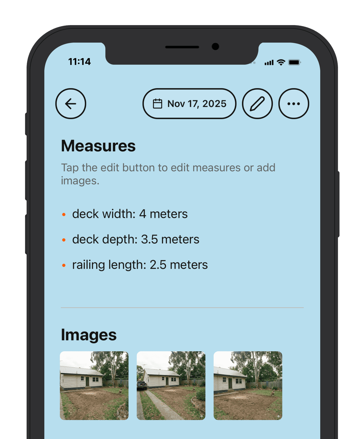 Add photos, materials and measurements to notes.